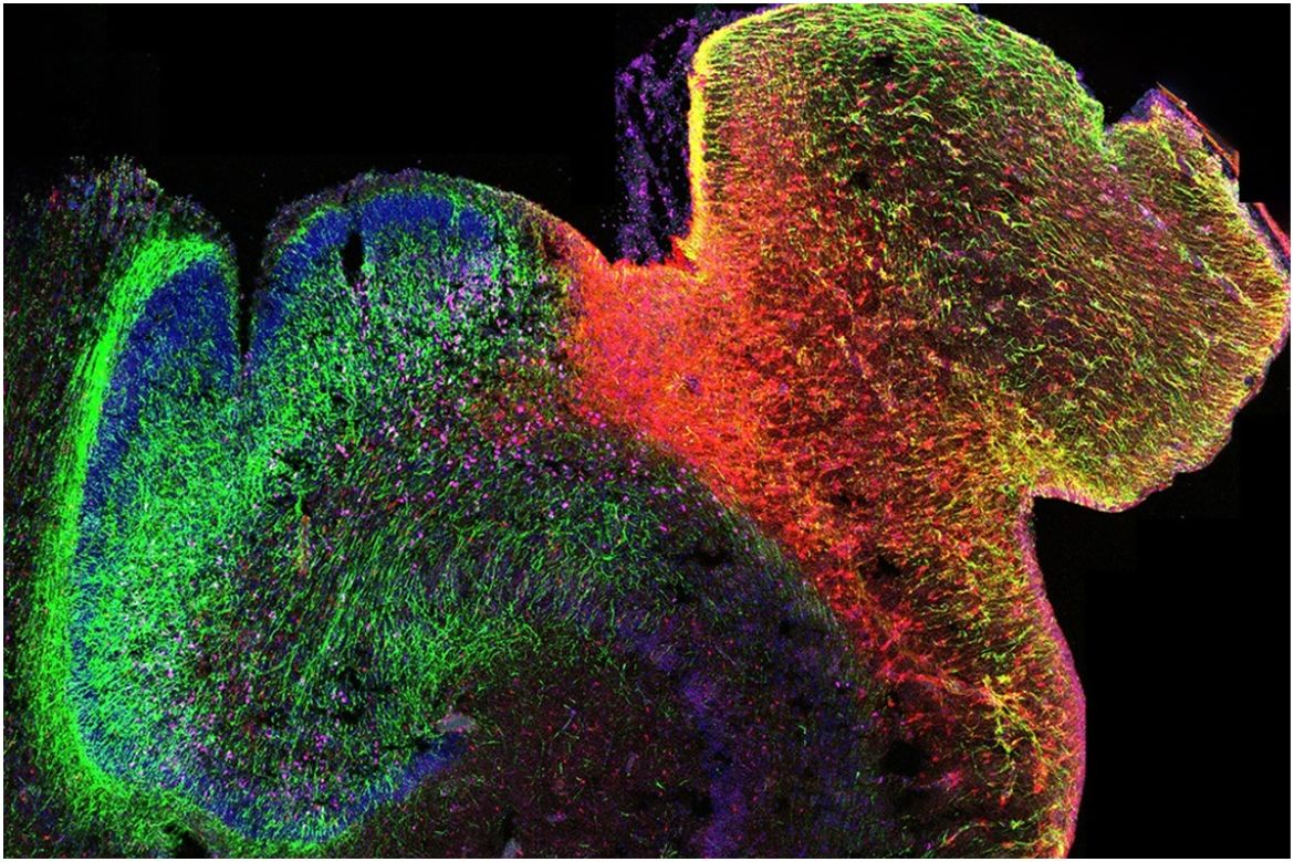 Foto: Imagine fluorescentă a unui hipocampus uman în curs de dezvoltare. Credit: UCLA, 9 octombrie 2024.